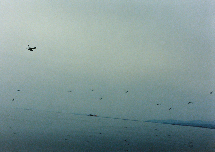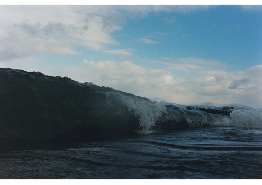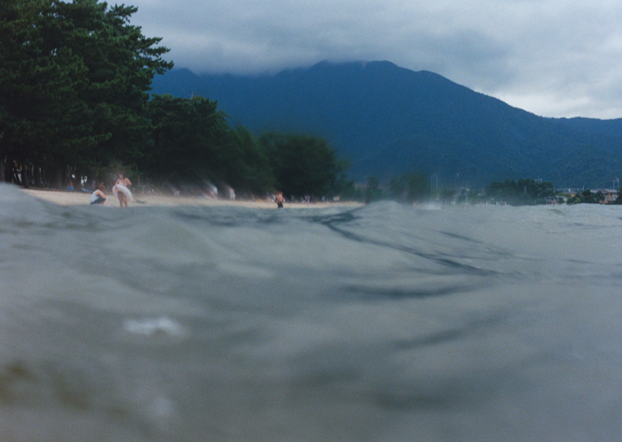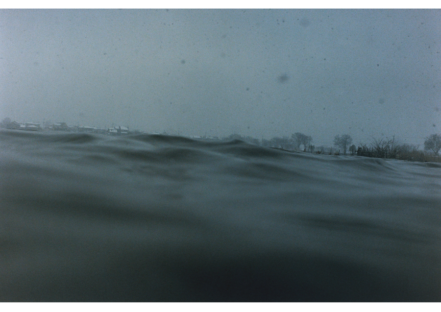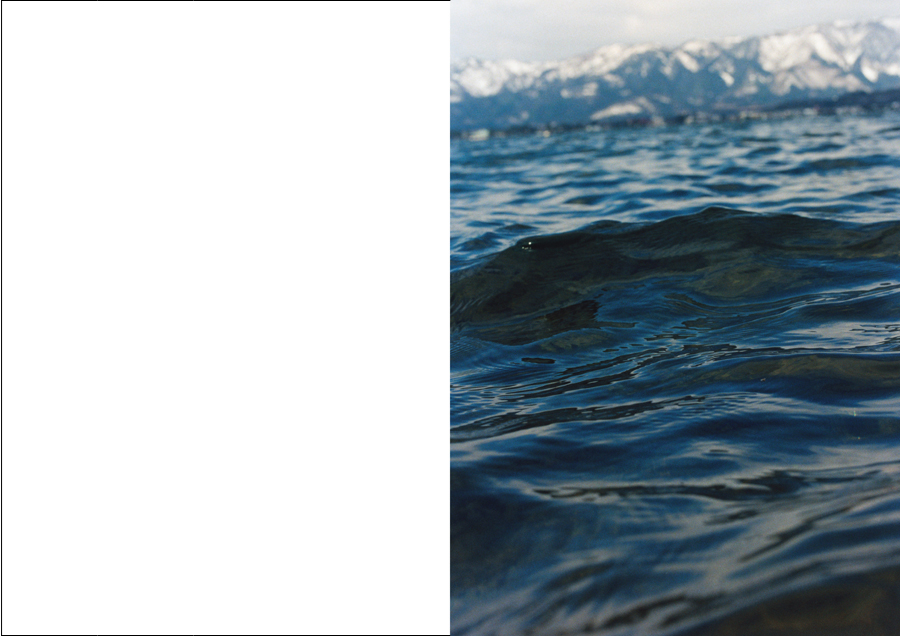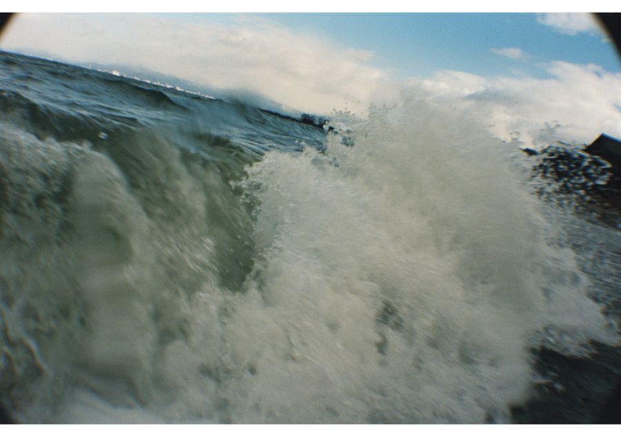 押しては引いていく波の間に間に見え隠れする陸と湖の狭間に身も心も揺られながら、茫漠と広がる琵琶湖に向かって(琵琶湖に背を向けて)、水面のゼロ地点から何かを契機としてシャッターを切っていく。陸が揺れているのか、湖が揺れているのか、境界線は曖昧になっていき、その境界線すらも何と何をわけるものなのかと揺らいでいく。時にそれは、地上と地下であり、酸素と無酸素であり、生と死などの観念であり、空想は尽きないのである。