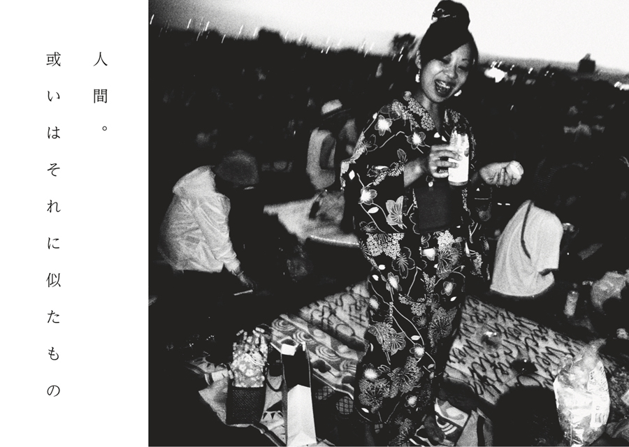極めて人工的なノイズによって厚化粧をされた憂い顔の人間共。無差別にノックアウト・ゲームを楽しむアメリカのティーンのように、行き交う無数の人間共に至近距離からこれでもかと米利堅を振りかざす。煌めきを失うほど黒々と殺められた人間共が凝望する風景に僅かばかりの此れからを期待して。もっともっと、陽の当たる場所へ。孤高の写真家シノハラユウタに剥ぎ取られた243人の仮面写真集。