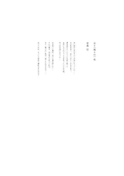 キヤノン写真新世紀優秀賞(荒木経惟 選)など数々の受賞歴を持つ写真家安森信が、自らの性に真正面から踏み込んだ作品シリーズを纏めた初の写真集。