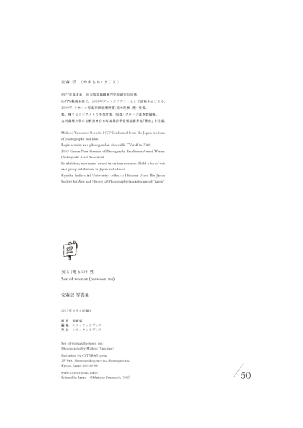 初めての写真集で自身が撮った『女』を世に出す事で、写真を撮るものとしての決意をここに示す。